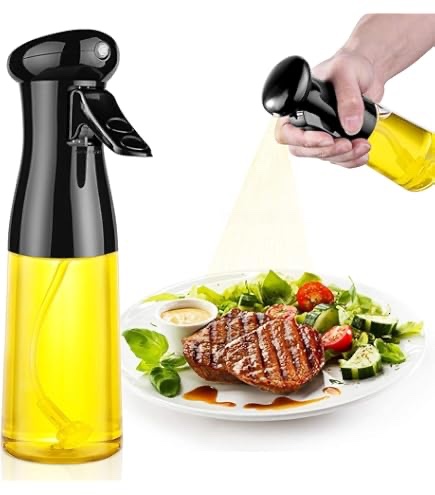 - QUANTITATIVE OIL SPRAY】: This olive oil sprayer is equipped with advanced fan-shaped spray atomizing nozzle, which can provide ultra-fine spray with even coverage. And precise oil control, one full stroke can spray about 1 gram (0.04 ounces) of cooking oil.